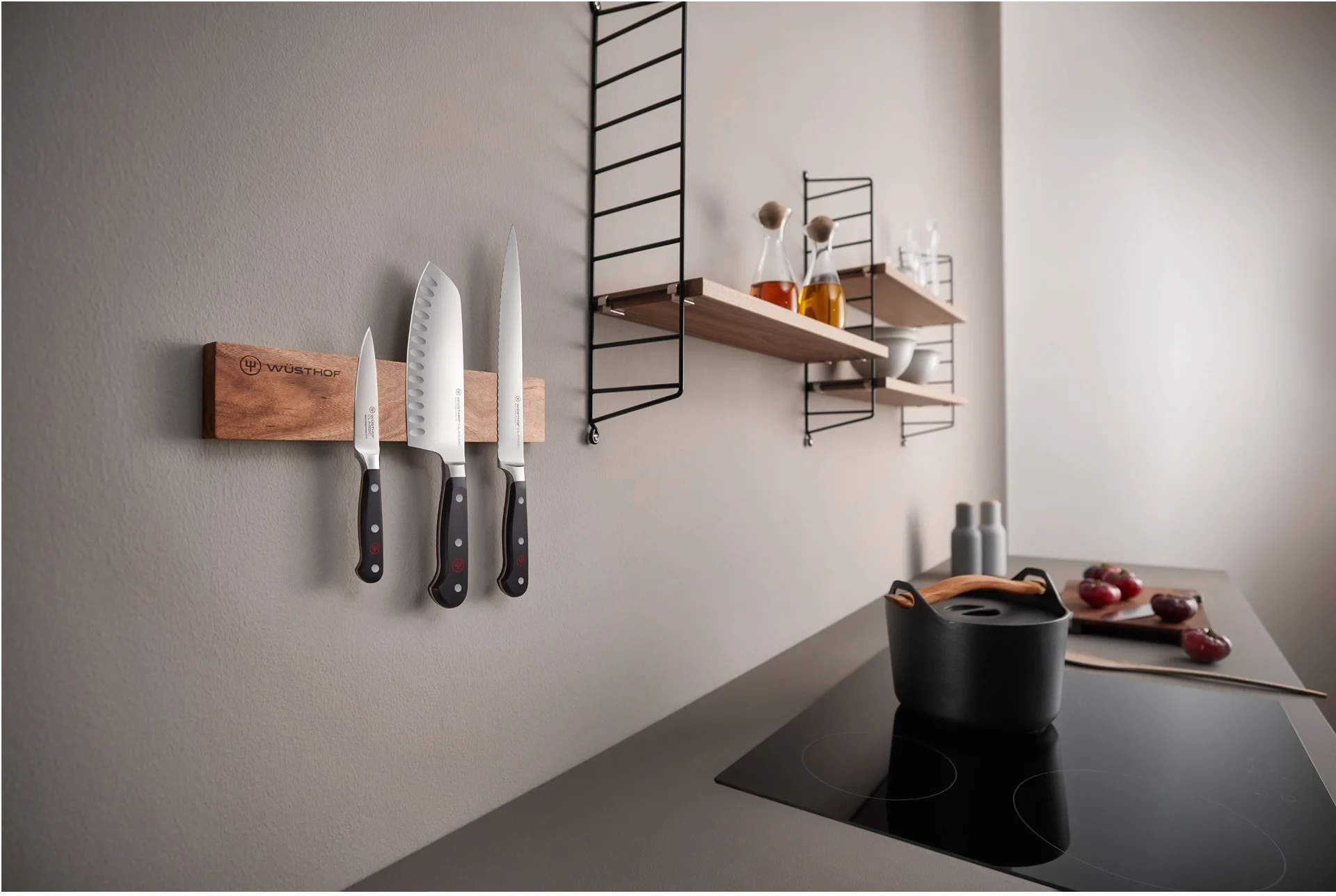 Listwa magnetyczna na noże marki Wusthof zapewnia bezpieczne i higieniczne przechowywanie noży. Mocny magnes utrzymuje noże stabilnie na miejscu, eliminując ryzyko przypadkowego skaleczenia oraz zapewniając łatwy dostęp do każdego narzędzia.