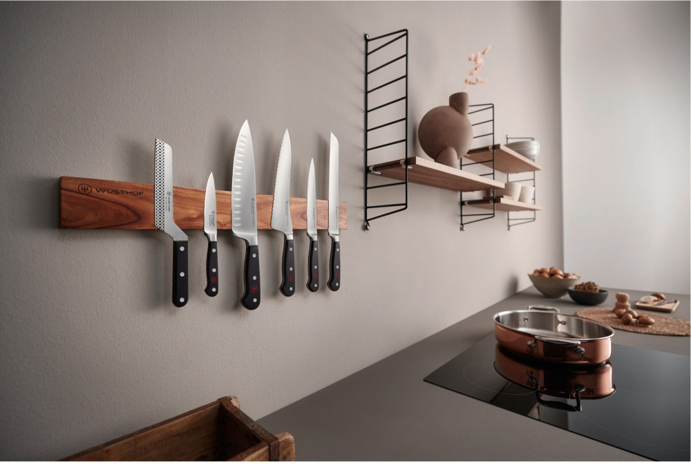 Listwa magnetyczna na noże marki Wusthof zapewnia bezpieczne i higieniczne przechowywanie noży. Mocny magnes utrzymuje noże stabilnie na miejscu, eliminując ryzyko przypadkowego skaleczenia oraz zapewniając łatwy dostęp do każdego narzędzia.