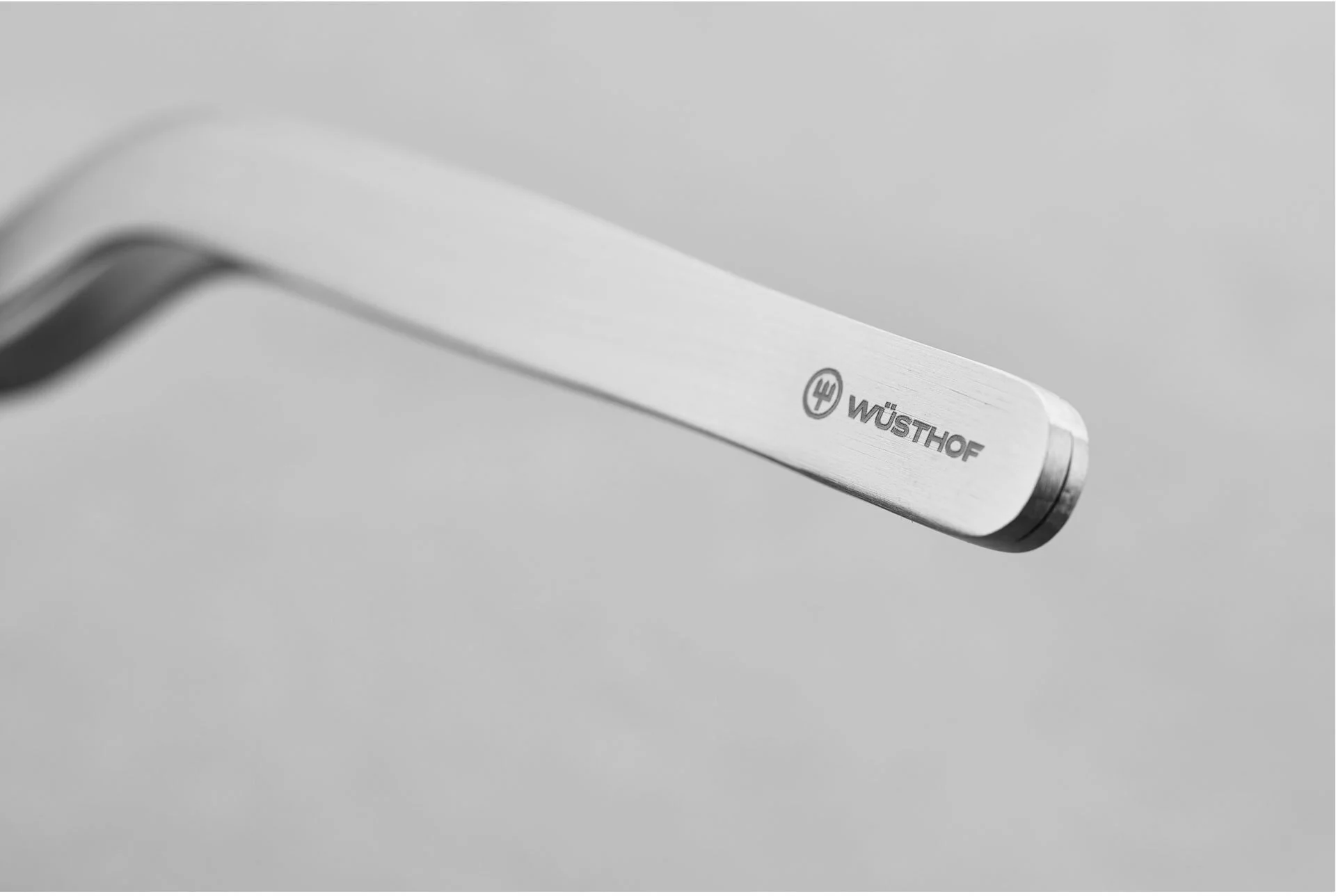Pinceta kuchenna marki WÜSTHOF to niezastąpione narzędzie do serwowania i dekorowania delikatnych potraw na talerzach i bufetach. Umożliwia precyzyjną pracę, a wykonanie ze stali nierdzewnej gwarantuje trwałość i higienę. Możliwość mycia w zmywarce ułatwia codzienne użytkowanie.