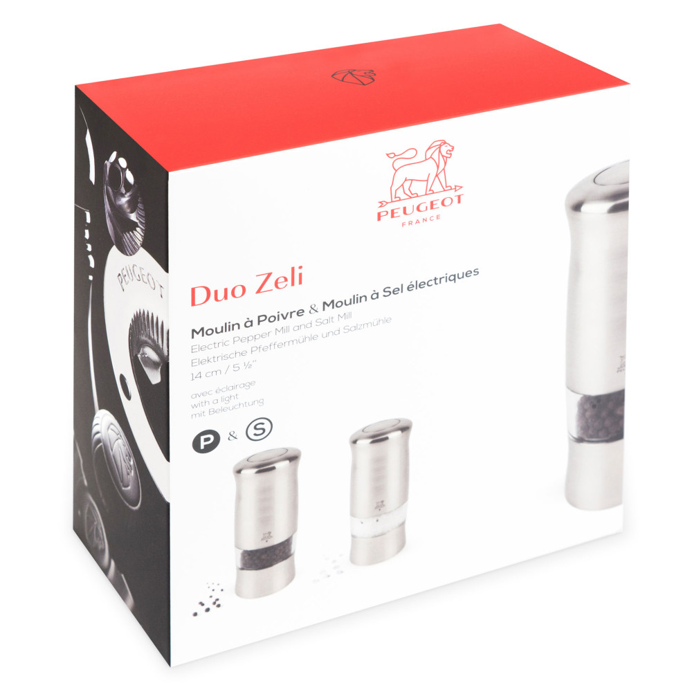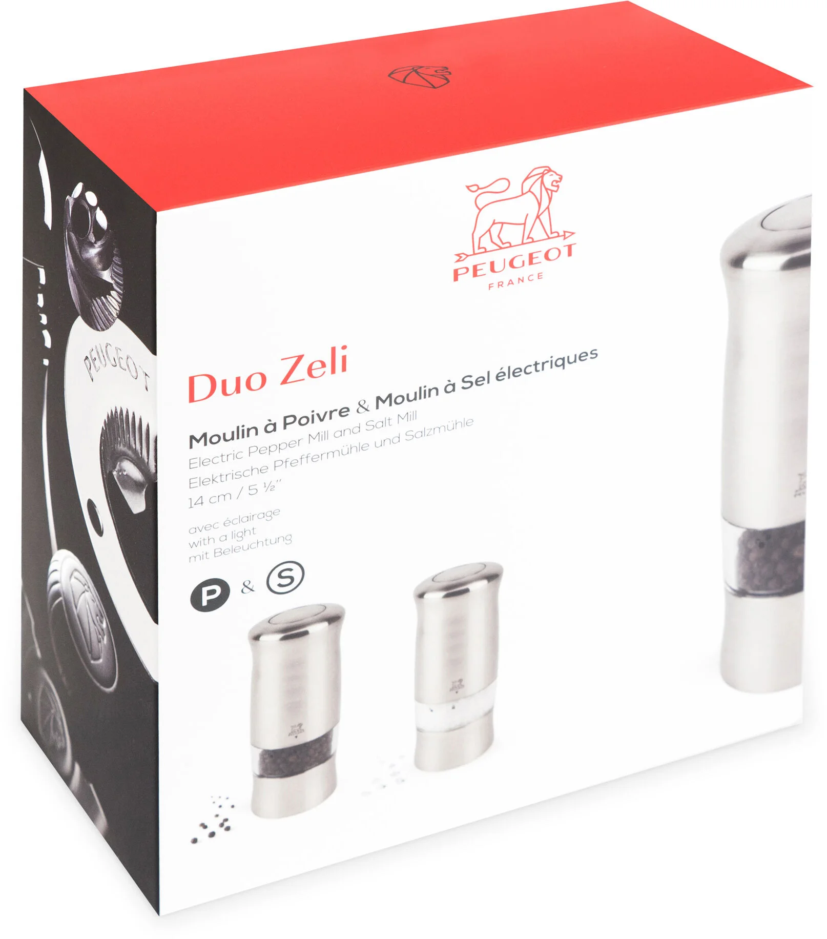 ZELI Zestaw młynków elektrycznych do soli i pieprzu 14 cm inox / PEUGEOT