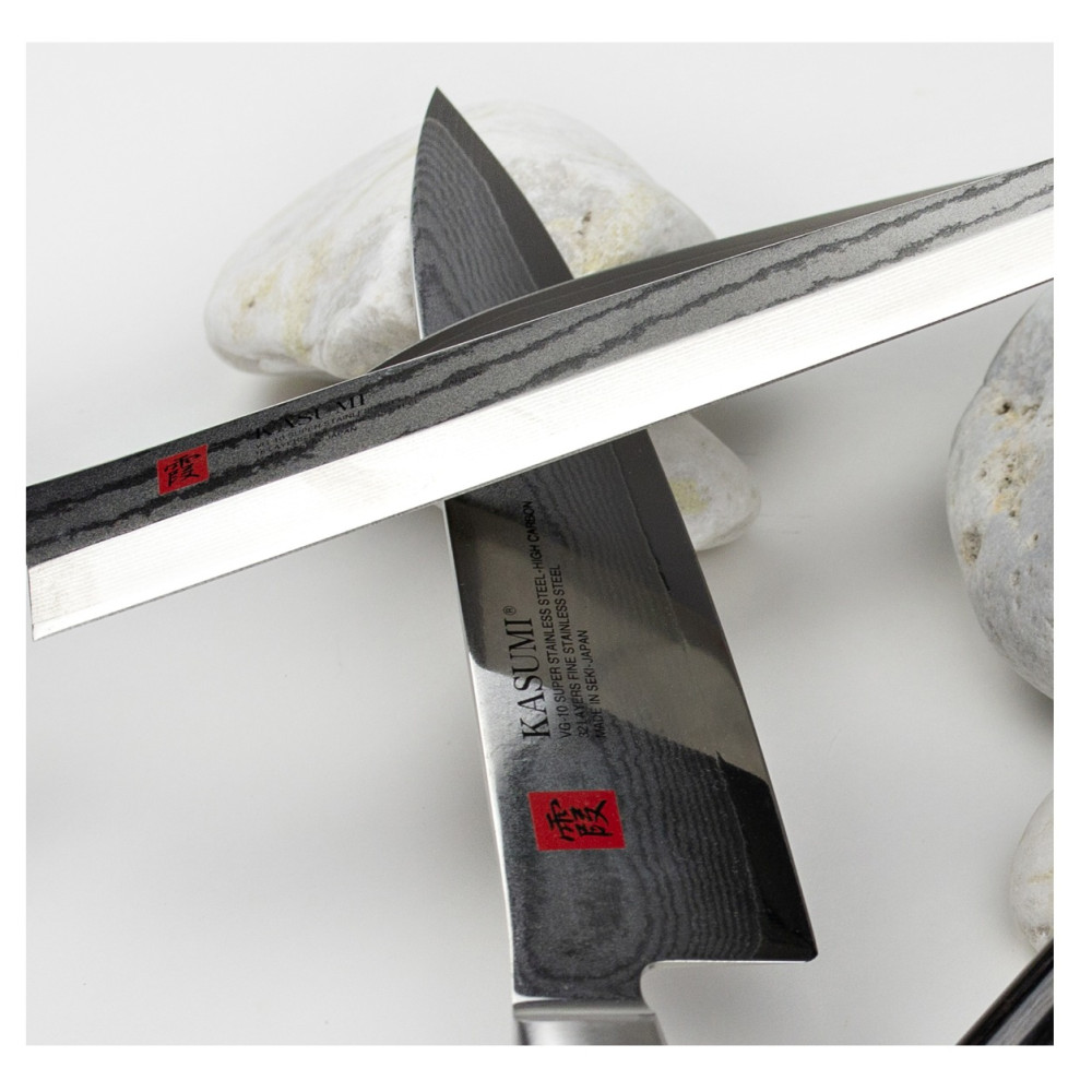 Każdy nóż ze stali damasceńskiej firmy KASUMI jest niepowtarzalnym arcydziełem tradycyjnej sztuki rękodzielniczej.