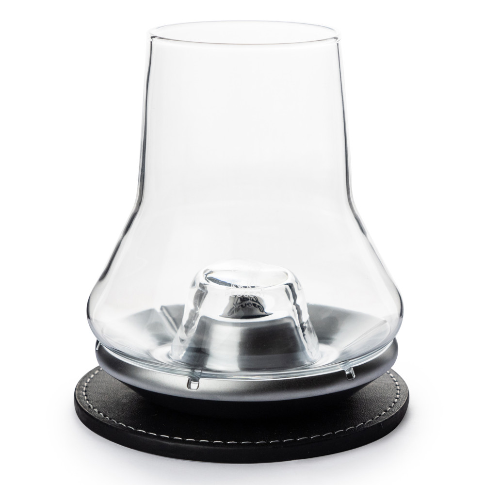 Metalowa podstawa służy do schładzania whisky bez użycia kostek lodu. Należy ją przechowywać w zamrażalce, następnie podłożyć pod napełnioną szklankę. Po kilku minutach (ok.3 min.) temperatura alkoholu obniży się do ok. 5-8 stopni. Idealne rozwiązanie do schłodzenia whisky bez konieczności dodawania lodu. Należy wlać whisky do wysokości wypustki tak, aby nie zakryć jej całkowicie alkoholem. Idealny prezent dla miłośników single maltów.