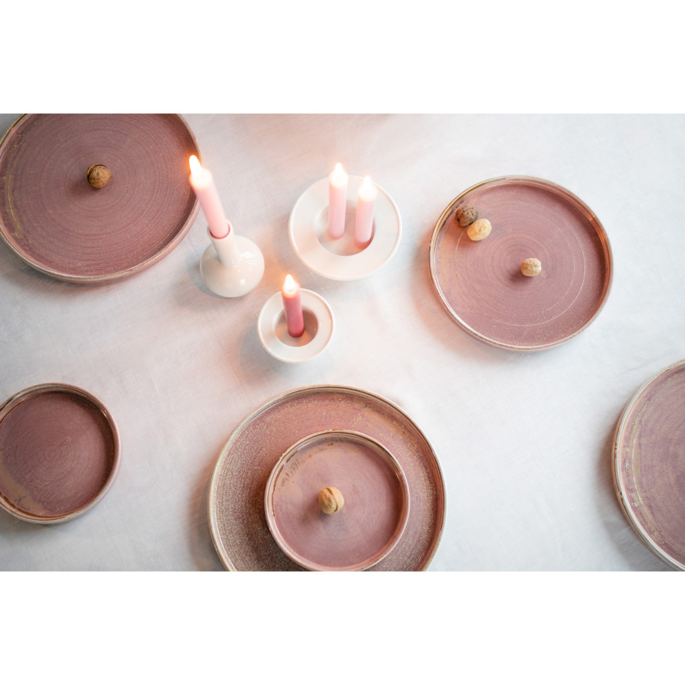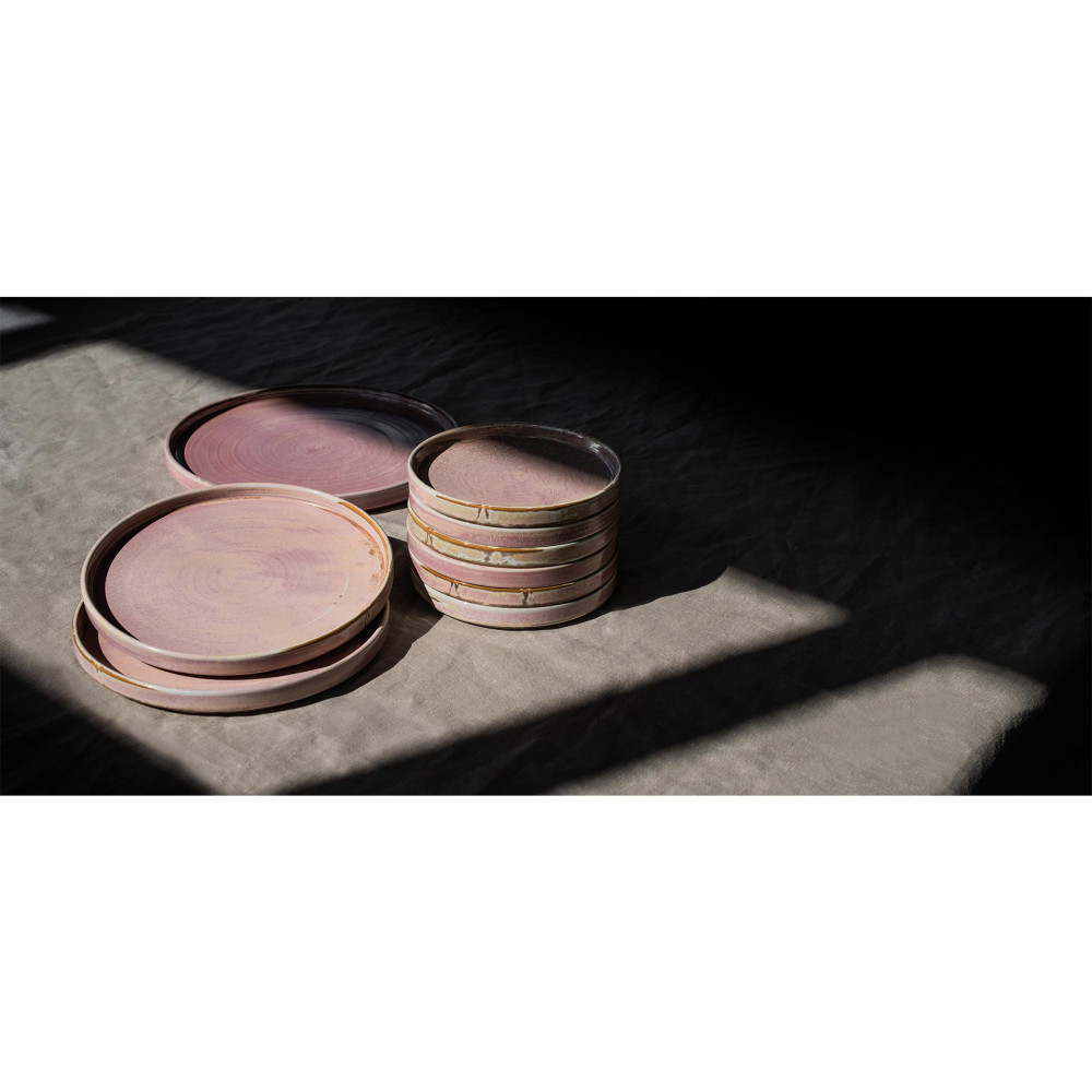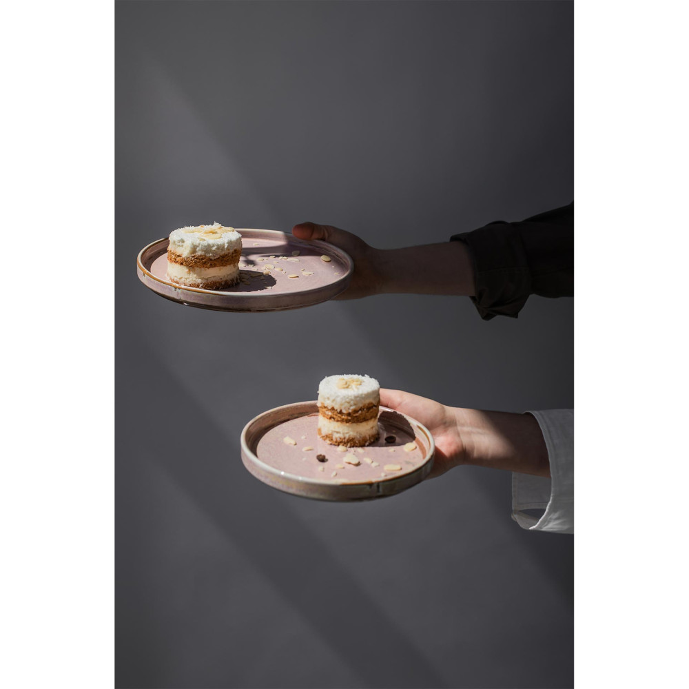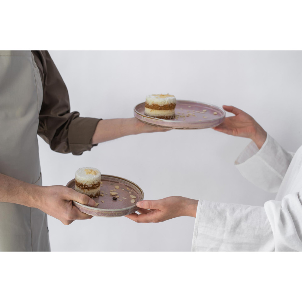 Talerze ZORZA to inspiracja dla miłośników niebanalnych akcentów w aranżacji stołu. To oryginalny wygląd serwowanych dań czy deserów. Nieregularnie przenikające się kolory pudrowego różu, szarości, beżu subtelnie łączą się z rdzawym zdobieniem wokół rantu. Talerze te można fantazyjnie łączyć z innymi elementami porcelany Verlo.