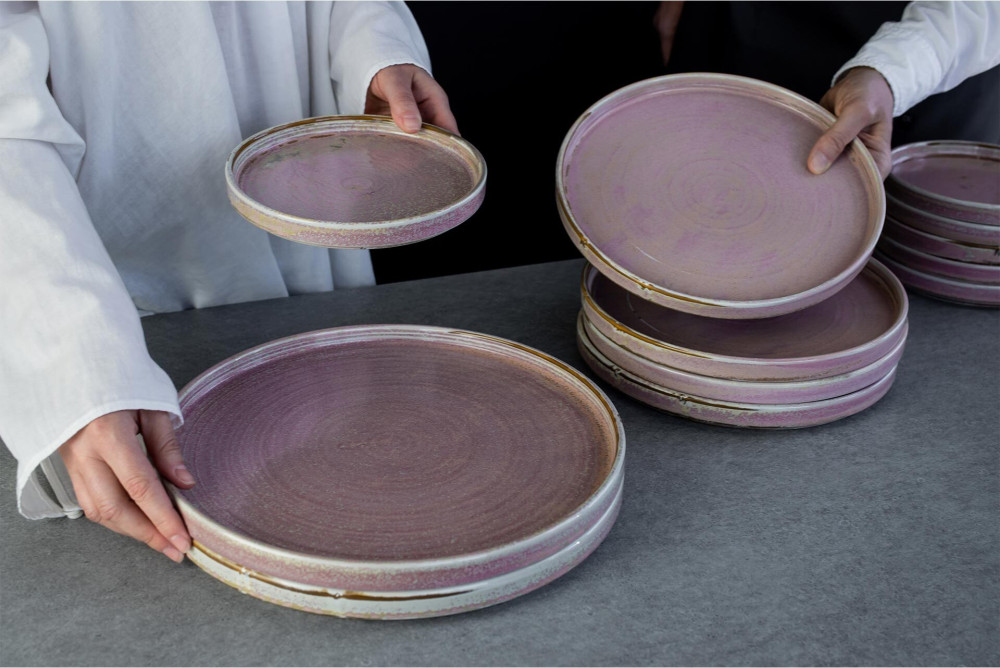 Umiejętne zastosowanie barw i innych komponentów podczas nakładania i wypalania szkliwa reaktywnego powoduje, że naczynia z tej kolekcji mają podobny charakter i doskonale się uzupełniają. Osiągnięty efekt, do złudzenia przypomina naczynia wyprodukowane przez rzemieślnika. Tworzymy w ten sposób unikalne kompozycje, które są ozdobą stołów w nowocześnie urządzonych mieszkaniach i restauracjach.